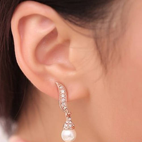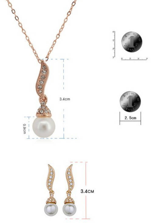 Gold Plated Pearl Leaf Earrings and Necklace set