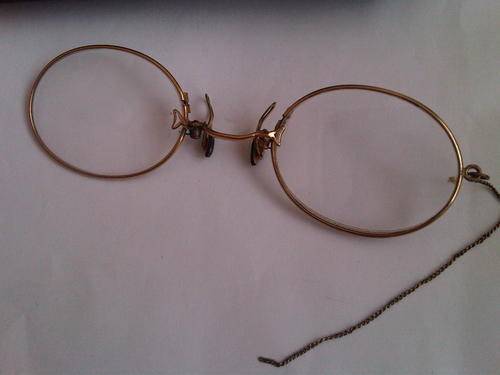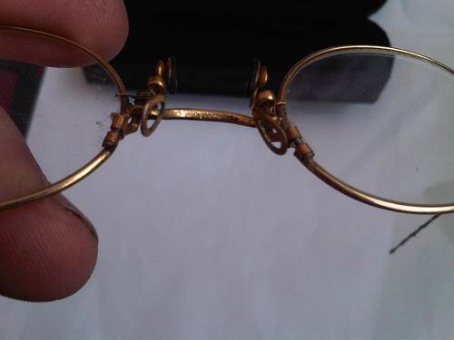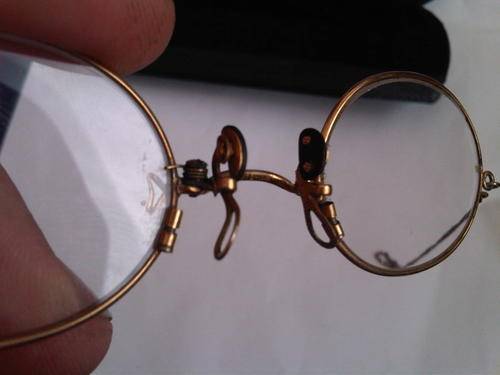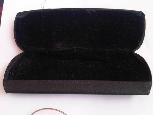 Exquisite glasses with a small chain on the side.this optical pare is in great condition. They have ( FIIS-U ) printed on the bend that goes over the nose. It is gold tone metal and has its own case, it is 10cm long and 3cm wide. The case is 11,5cm long and 4cm eide and 1.5cm thick. the glasses are flat and seem to have little help for the eyes but that just shows how old this is.