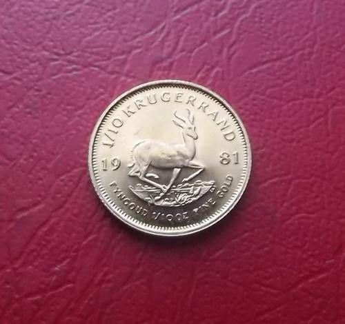 Up for this auction is a RSA 1981 one tenth ounce Kruger Rand (1/10oz). Uncirculated condition. Beautiful!!! Gold!!! The coin you see pictured, is the exact coin you will receive These 1/10th Oz Gold Krugers are not up for auction every day...Where is gold heading with the euro crisis?