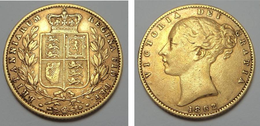 Gold Victorian Sovereign (Shield Back) 1862