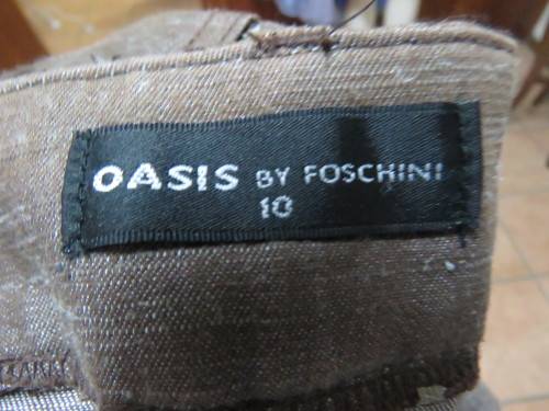 Golden brown pants in mottled look.By 'OASIS' in size 34/10.Bootlegged with low rise front.In polycotton stretch fabric.No pockets.As new.