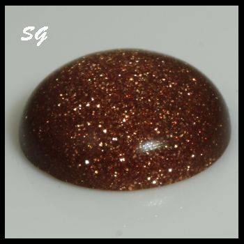 The copper crystalises creates the impression of a reddish-brown stone with a golden starry-glitter. The reddish-brown hue of the stone is actually an illusion. The stone itself is transparent and is given the appearance of reddish-brown by the copper crystals.