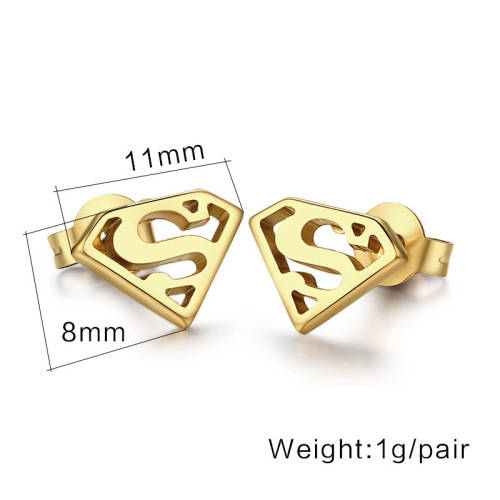 Goldtone 316L Stainless Steel SUPERMAN / SUPERGIRL earrings studs.