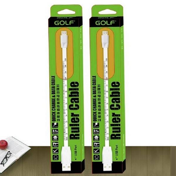 Description: Brand: GOLF Model: Ruler Scale Style Charging Data Cable Charging Current: 2.1A Interface:micro USB Line length: 1M Function: Charging and data transmission Color: White Feature: 1.Using a ruler scale design, one cable have two way to use,not only can be use to cellphone charging and data transmission, but also can also be used to measure things. 2.Resistance to wear and tear, anti-interference, flexibility is strong. 3.Support for charging and data transmission at the same time,maximum support 2.1 A current transmission. Package Included: