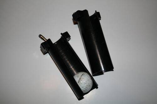 Very handy molded plastic golf ball holder x 2, holds ball marker, 3 golf balls and tees, clips onto golf bag. Great for replacement balls or tees..