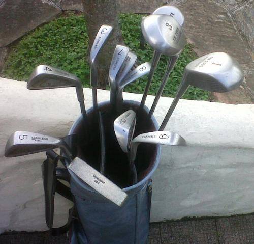 GOLF CLUBS , SLAZENGER TM2000 3-9 IRONS +1,3,5 DRIVERS +DW + PUTTER +BAG, READY 2 PLAY AS PER PICS ,THIS SET HAS STOOD IN GARAGE FOR A LONG TIME SOME GRIPS HAVE CRACKS NOTHING SERIOUS SEE PICS