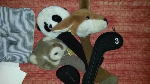 3 x animal wood covers, 3 iron cover, odyssey putter cover