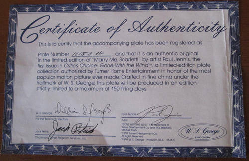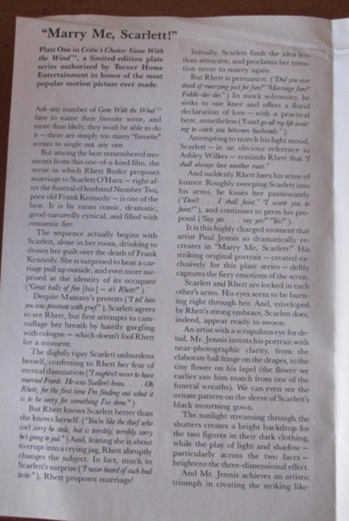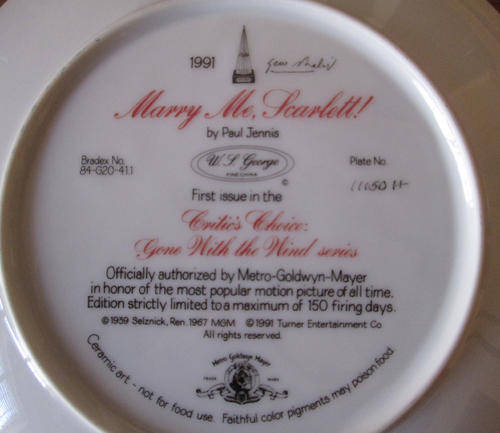 Gone with the Wind 'Marry Me Scarlett' Wall Plate (with Original Box and Certificate)