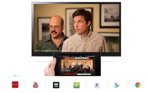 With Chromecast, you can easily enjoy your favorite online entertainment on your HDTV—movies, TV shows, music, and more from Netflix, YouTube, Hulu Plus, Google Play Movies and Music, and Chrome. No more huddling around small screens and tiny speakers. Chromecast automatically updates to work with a growing number of apps.