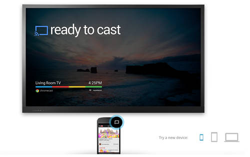 Chromecast works with devices you already own, including Android tablets and smartphones, iPhones®, iPads®, Chrome for Mac® and Chrome for Windows®. Browse for what to watch, control playback, and adjust volume using your device. You won't have to learn anything new.
