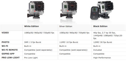 Video resolution: WVGA, 720p, 960p, 1080p, 1440p, 2.7K, 2.7K Cin, 4K, 4K Cin