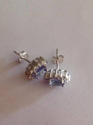 Gorgeous 1.19 ct Genuine Tanzanite & 2x diamonds Platinum / Sterling Silver Earrings