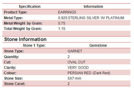 Gorgeous 2ct Genuine Dark Red Garnet and Platinum / Sterling Silver Earrings