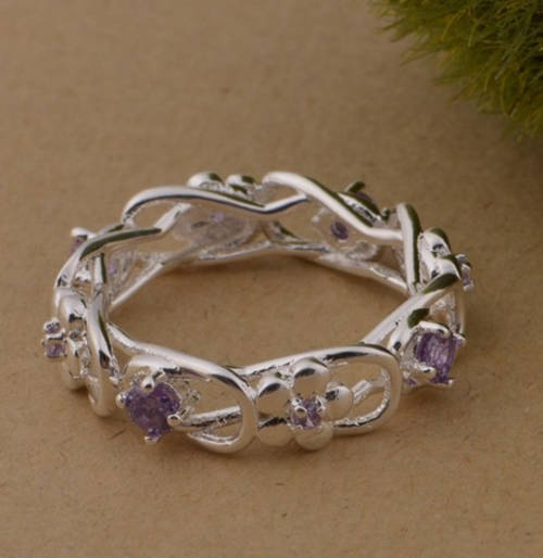 Gorgeous Amethyst**Prong Setting** 925 Sterling Silver Bridal Wanda Filled Ring (Size 8)