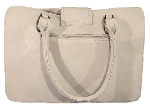 THIS LOVELY HANDBAG HAS A SOPHISTICATED EXTERIOR AND A PRACTICAL INTERIOR.