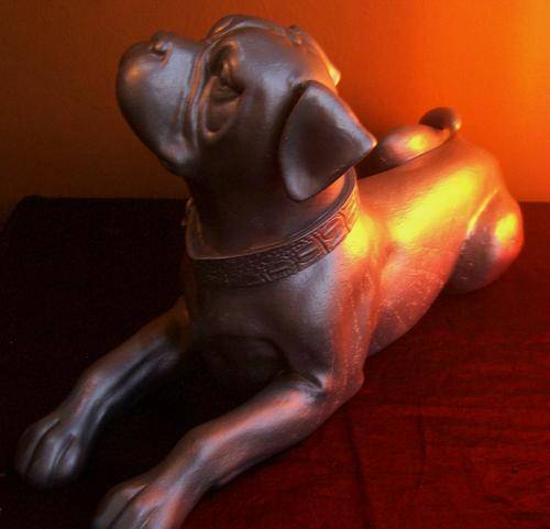 GORGEOUS AND LARGE SILVER BOXER DOG ORNAMENT WANTING A NEW HOME!