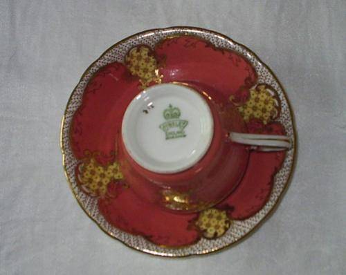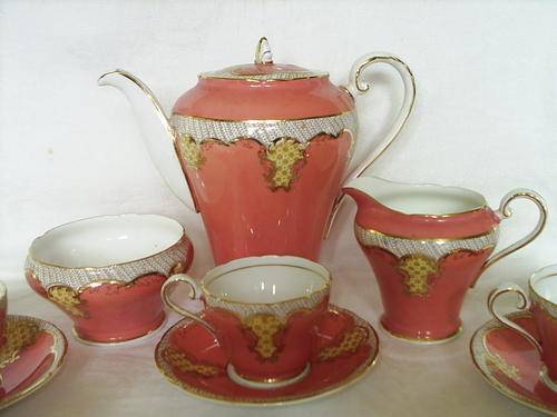 Exquisite and unusual coloured Aynsley Coffee set with gilded trimming. Full set for six as follows with no chips or cracks: