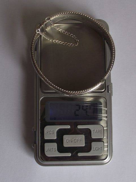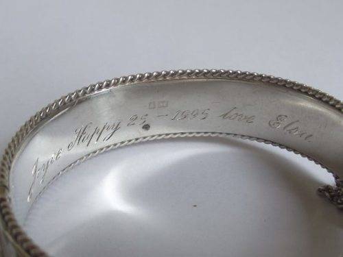GORGEOUS BIRMINGHAM HALLMARKED STERLING SILVER CLIP BANGLE WITH SAFETY CHAIN, MAKERS MARK JS