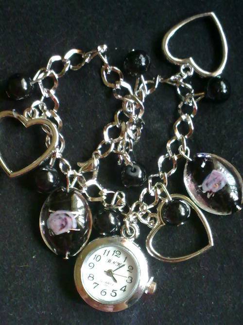 GORGEOUS BLACK CHARM BRACELET WATCH