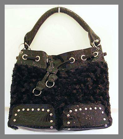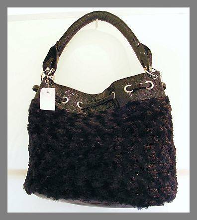 GORGEOUS BLACK SOFT FAUX FUR AND CROC LARGE HANDBAG