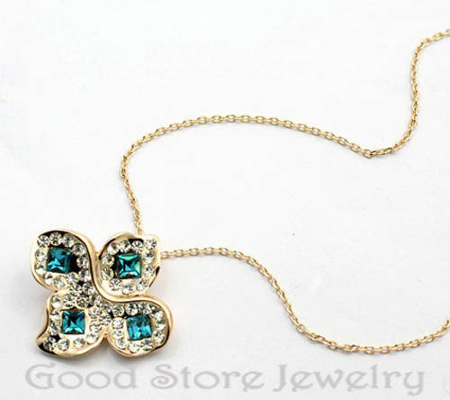 GORGEOUS BLUE TOPAZ SWAROVSKI NECKLACE IN 18K WHITE GOLD CLAD