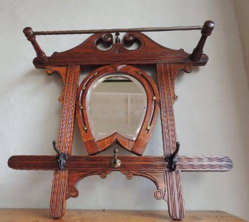GORGEOUS COAT WALL RACK WITH BEVELLED HORSESHOE MIRROR