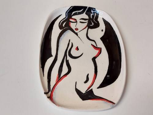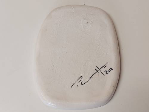 GORGEOUS CONTEMPORARY ART CERAMIC PLATE, SIGNED BY THE ARTIST. IT IS IN A WELL PRESERVED WITH NO CHIPS OR CRACKS AND MEASURES ABOUT 15 X 11 CM
