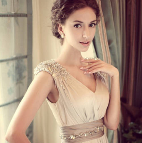 Gorgeous Crystal Diamented Silk Chiffon Formal Dress / Wedding Dress