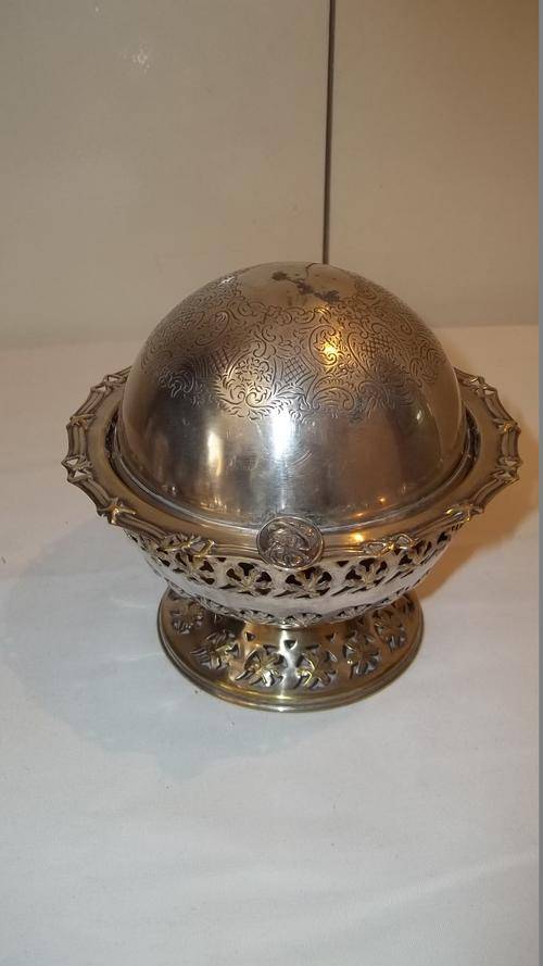 GORGEOUS ENGLISH SILVER PLATED BALLER BALL DISH WITH RETRACTABLE DOME LID - STUNNING!!!!