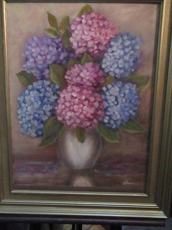 Beautiful framed oil on Board of Agapanthas , by SE Havafey the painting is 74cm x 60cm.