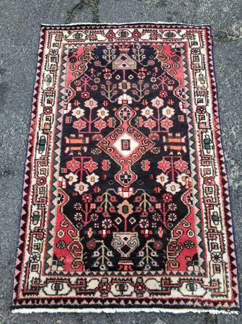 THIS IS A BEAUTIFUL ANTIQUE GENUINE WOOL HAND KNOTTED DOUBLE KNOT TRIBAL HAMADAN PERSIAN CARPET