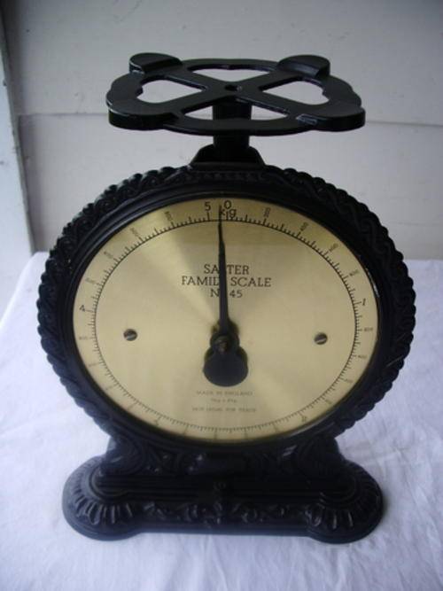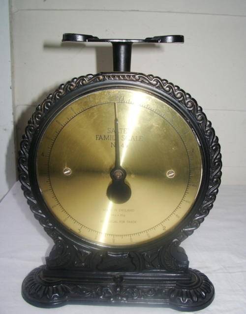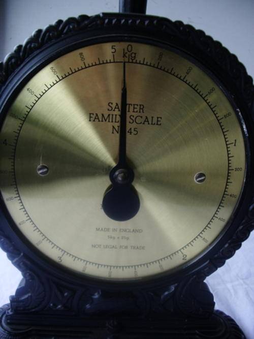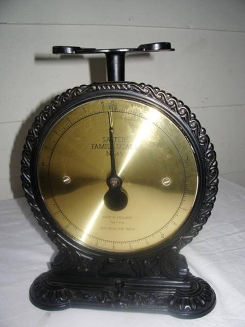 Due to popular demand Salter brought out this lovely scale in the 1980's to resemble their vintage Victorian scale. It is working perfectly and is in a good condition but the tray is missing. This is easy enough to replace with something else and it has a calibrating knob to set the scale.