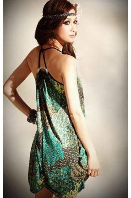 **GORGEOUS GREEN BOHO HALTER DRESS**