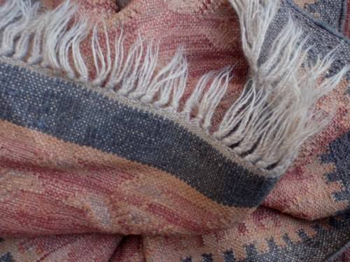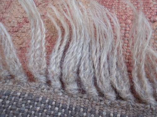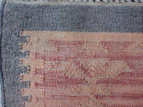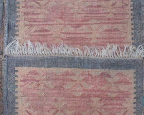 VINTAGE HAND WOVEN WOOL DHURRIE - LONG RUNNER 300cm x 71cm (plus fringes) IN GOOD CONDITION WITH NO HOLES - FRINGES NICELY INTACT.