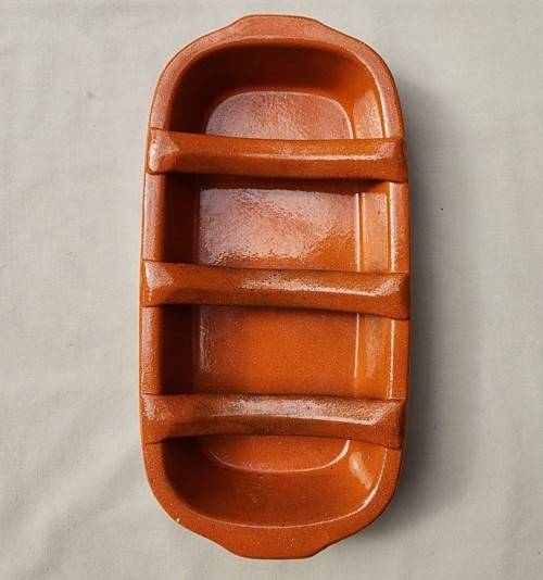 BEAUTIFUL HANDMADE AND HANDPAINTED GLAZED TERRACOTTA POTTERY GRILLER FROM PORTUGAL. By Joao Vasc. Vale, Barcelos, Portugal. This particular piece is a 27cm chourico (spicy sausage) griller or assador (roaster). Pour half cup of brandy or suitable alcohol into the base of the assador, and then set alight. Place deep cuts into the chourico and place on top of the assador. Turn over when crispy and grill further, all in all about 10 minutes.