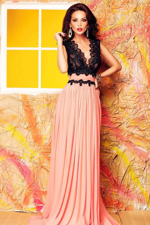 GORGEOUS LACE DETAIL MAXI EVENING DRESS