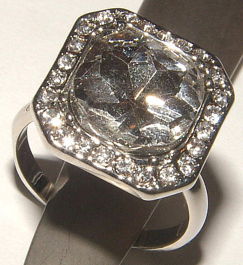 GORGEOUS LUCITE AND RHINESTONE DRESS RING - ***NEW!***