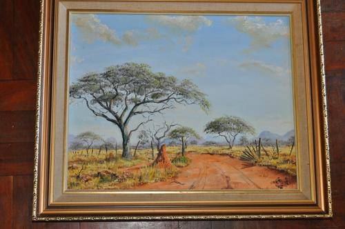 GORGEOUS OIL ON BOARD,SAVANNA SCENE,SIGNED BY ARTIST IN BEAUTIFUL FRAME