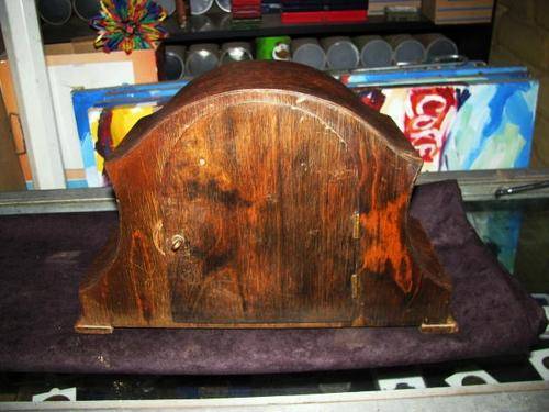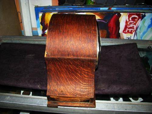 This beauty of a clock was made in about 1910 it has an oak case which is in good condition. the door at the back still has its original lock mechanism. the clock is in working condition however the movement has been changed to a quartz movement. you can now have the look of an antique clock without the hassle of winding it and having to make sure it is perfectly level.