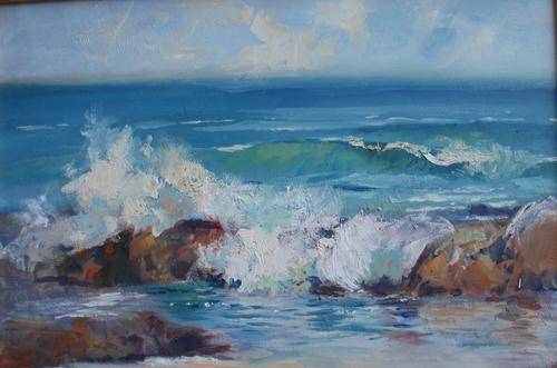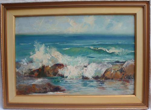 GORGEOUS ORIGINAL SEASCAPE BY ARTIST, MARY CLARK. PAINTED IN A LOVELY IMPRESSIONEST STYLE! FRAMED AND READY TO HANG. SIZE: 54CM X 39CM (THIS IS TOTAL SIZE WITH FRAME)