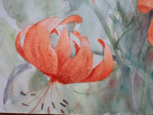 STUNNING ORIGINAL WATERCOLOUR PAINTING 'TANGERINE LILIES' SIZE: 38CM X 28CM REQUIRES FRAMING.