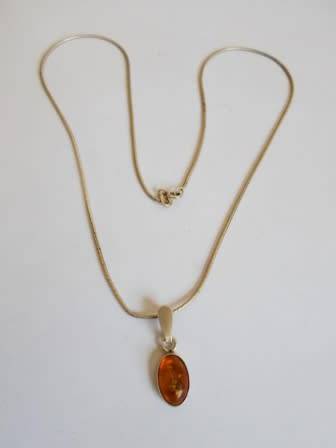 GORGEOUS!! QUALITY!! STERLING SILVER AMBER PENDANT & CHAIN 5,0g WOW!!