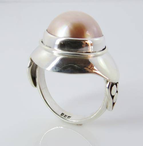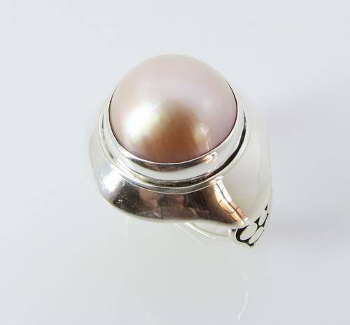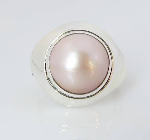 This ring is set with a perfect Pink Real Mabe Pearl and its a size 7.