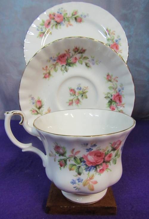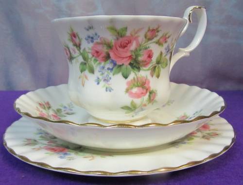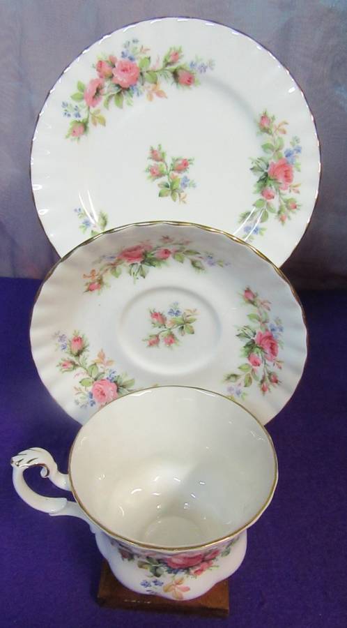 GORGEOUS ROYAL ALBERT MOSS ROSE TEA CUP TRIO STUNNING ENGLISH PORCELAIN 3 AVAILABLE PRICE PER EACH
