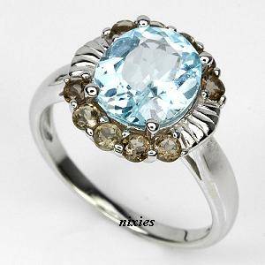 GORGEOUS SOLID 925 STERLING SILVER BLUE & SMOKEY TOPAZ RING - SIZE 8.5(R)