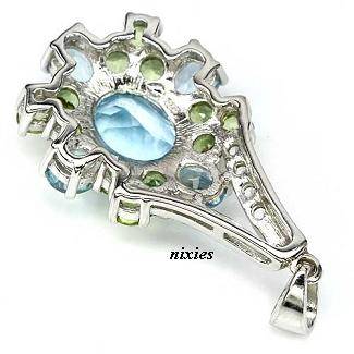 GORGEOUS SOLID 925 STERLING SILVER BLUE TOPAZ & PERIDOT PENDANT
