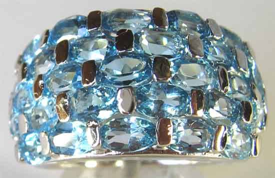 This stylish , dome sterling silver ring is set with 22 pieces of 4.00 x 3.00 mm oval cut blue topaz , approx . 4.20 ct , same as the photo. New ring.