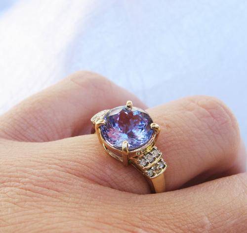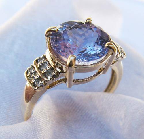 GORGEOUS!!! UK HALLMARKED 9CT YELLOW GOLD DIAMOND & 3.35 CARAT TANZANITE RING SIZE N