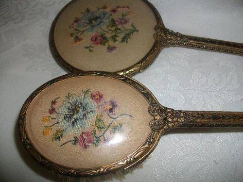 Lovely vintage ladies petti point tapestry , dressing table brush set items are in good used conditionplease have a look at my other listings *free sprit*thank you