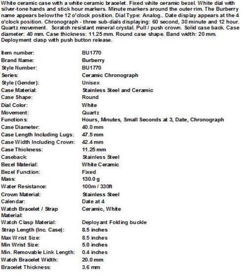 GORGEOUS WATCH*Burberry CERAMIC UNISEX Chronograph W/ Box Papers etc**R6299**